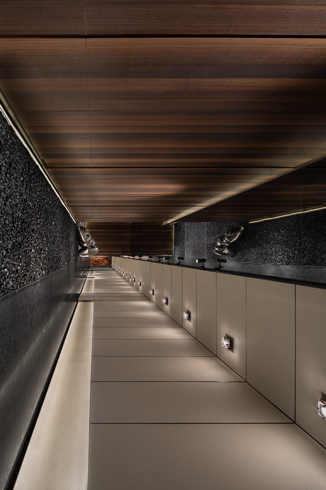 望京国誉府接待中心,伫立于六朝古都北京大望京商务中心,浓重的文化印记承载着历史的精神与光辉。设计师说:”东方人的思想是含蓄的,陶醉与观察事物的发展、变化,比如水墨润然展开的过程,我们希望在空间中体现这种不断变化的势”。